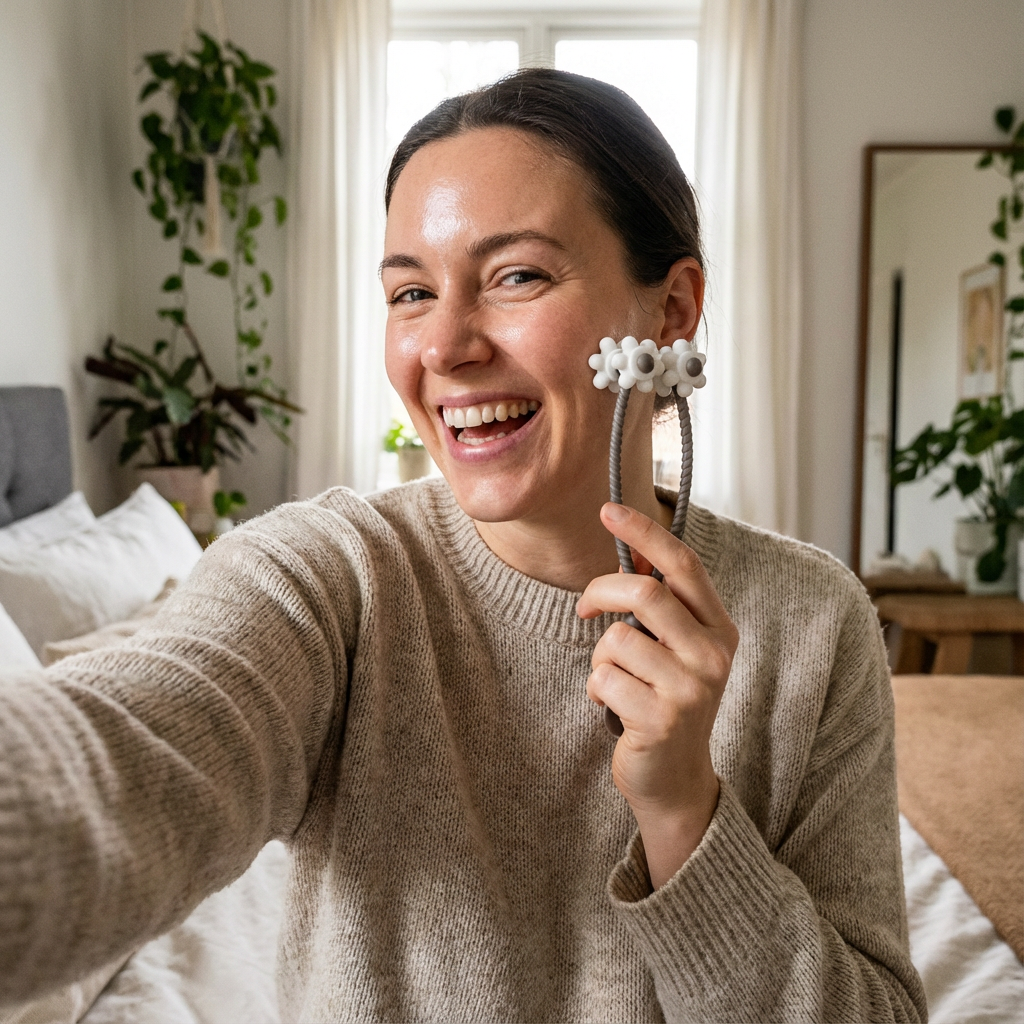 Lyftra är framtagen för att massera ansiktets muskler och stimulera lymfflödet. Perfekt när ansiktet känns spänt, tungt eller puffigt och du vill återställa en behaglig känsla.